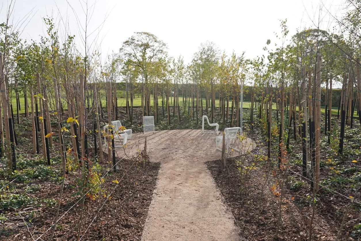 The image of the Garden of Peace is mainly determined by the path leading through a high and narrow ditch, which is set in a grove of 282 birch trees. The abundance of trunks and branches evokes in visitors to the natural monument the feeling that they are passing through a fog that made conditions on the battlefield difficult, and that they cannot see because they have been blinded by toxic gas. The birch trees gradually disappear to make way for lime trees, the national symbol of the Czechs and Slovaks.