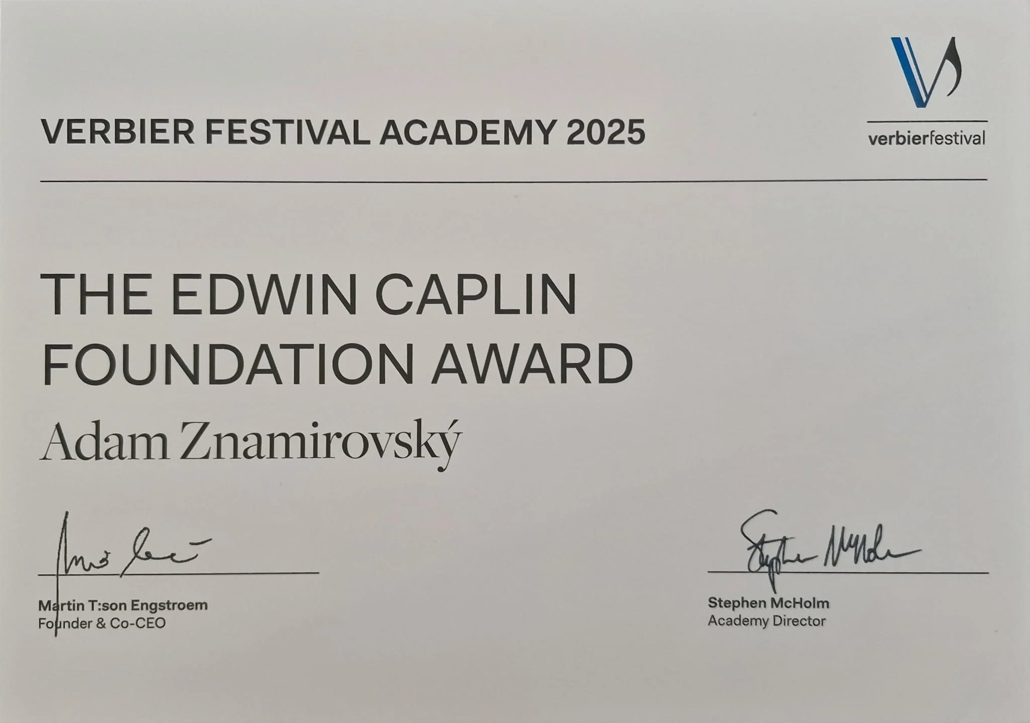 The Edwin Caplin Foundation Award is presented to the Academy’s top students as a recognition of their outstanding achievements. This year, the jury decided to share the award among two exceptional junior participants in addition to Adam: Roa Lee (violin, South Korea) and Luis Dias Canali (piano, Spain). Each recipient received 1,600 Swiss francs.