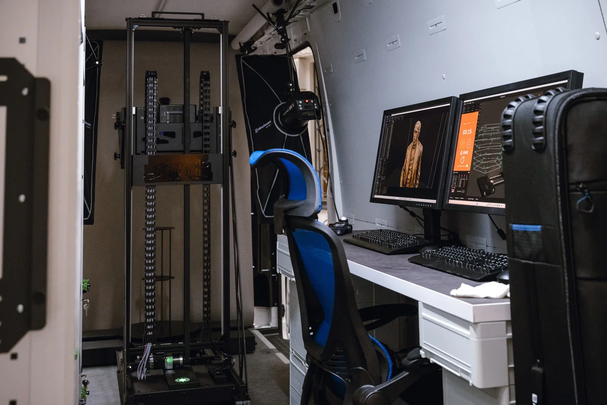 The Ark III project marks a new approach to protecting cultural heritage in wartime. This mobile workstation allows for the digitisation of objects of various sizes directly within institutions as well as in the field – from small artefacts to large‑scale objects. This process creates accurate digital replicas that can be used for documentation, research, and, where needed, the future restoration of damaged monuments.
