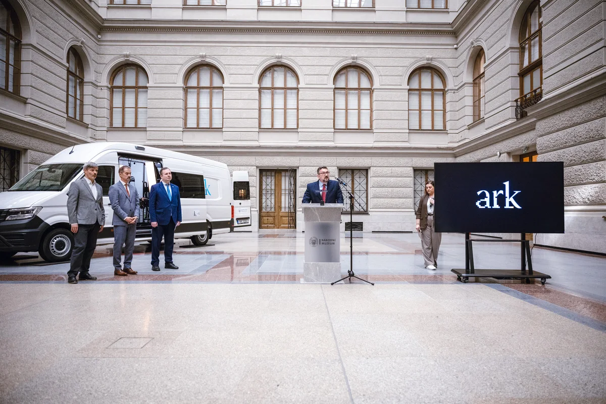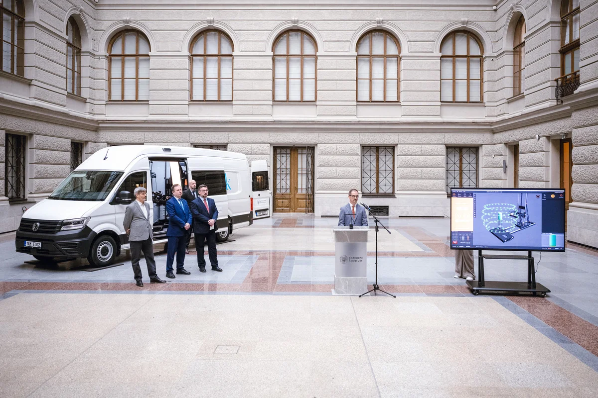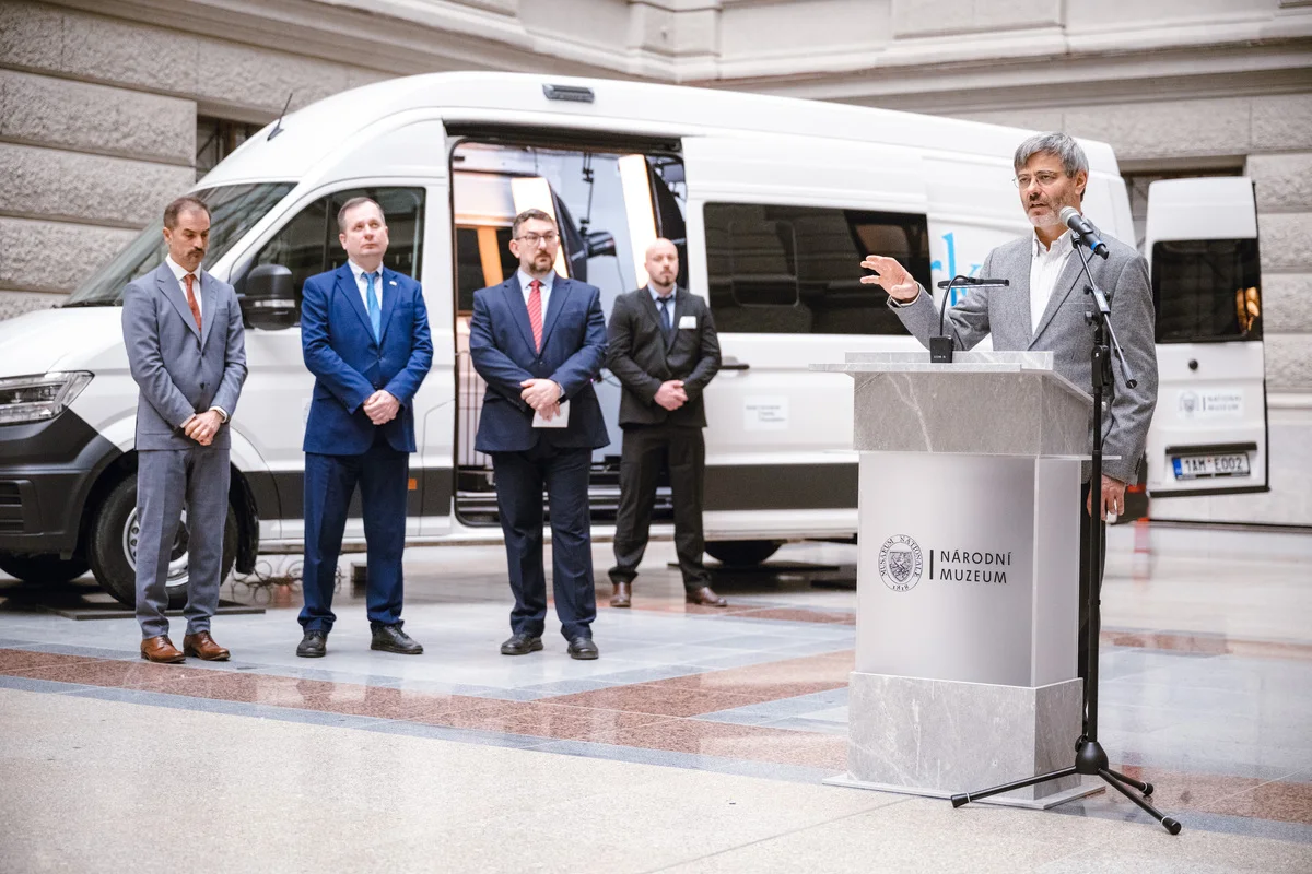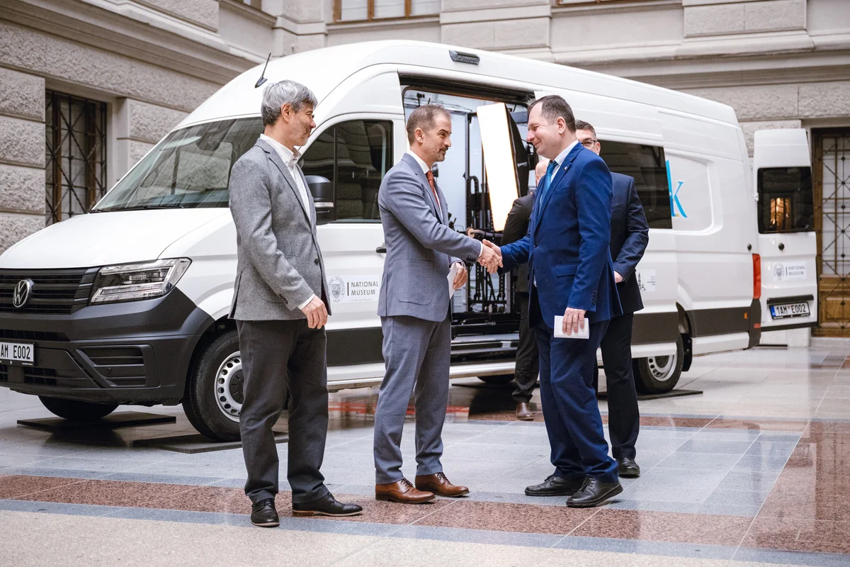 The mobile digitisation unit is built on a Volkswagen Crafter chassis and equipped with state‑of‑the‑art 3D scanners and photogrammetric systems. The technology was developed by experts from the National Museum of the Czech Republic specifically for the digitisation of collection objects under crisis conditions.