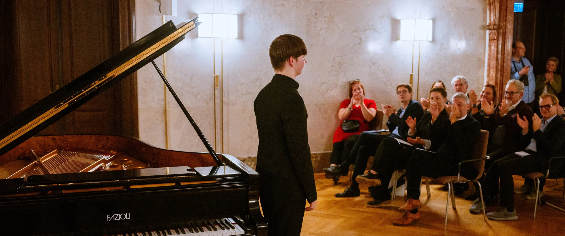 The Cheering on Talents from the Pianos for Schools scholarship fund is one of our newest initiatives. We do not only support talented young musicians financially, but our goal is to also help them systematically build their careers in the long term. Gifted individuals receive support from top mentors and have the opportunity to develop their skills in masterclasses and through performances both at home and abroad.