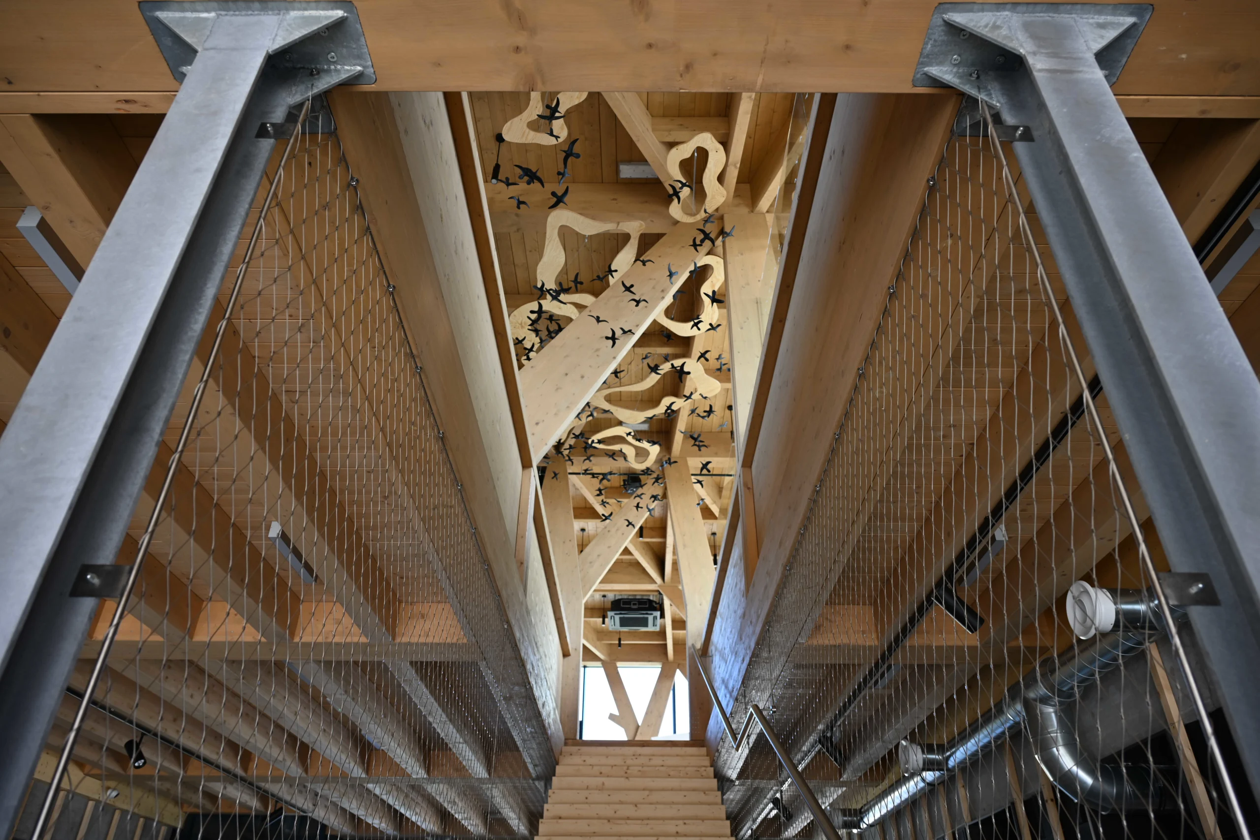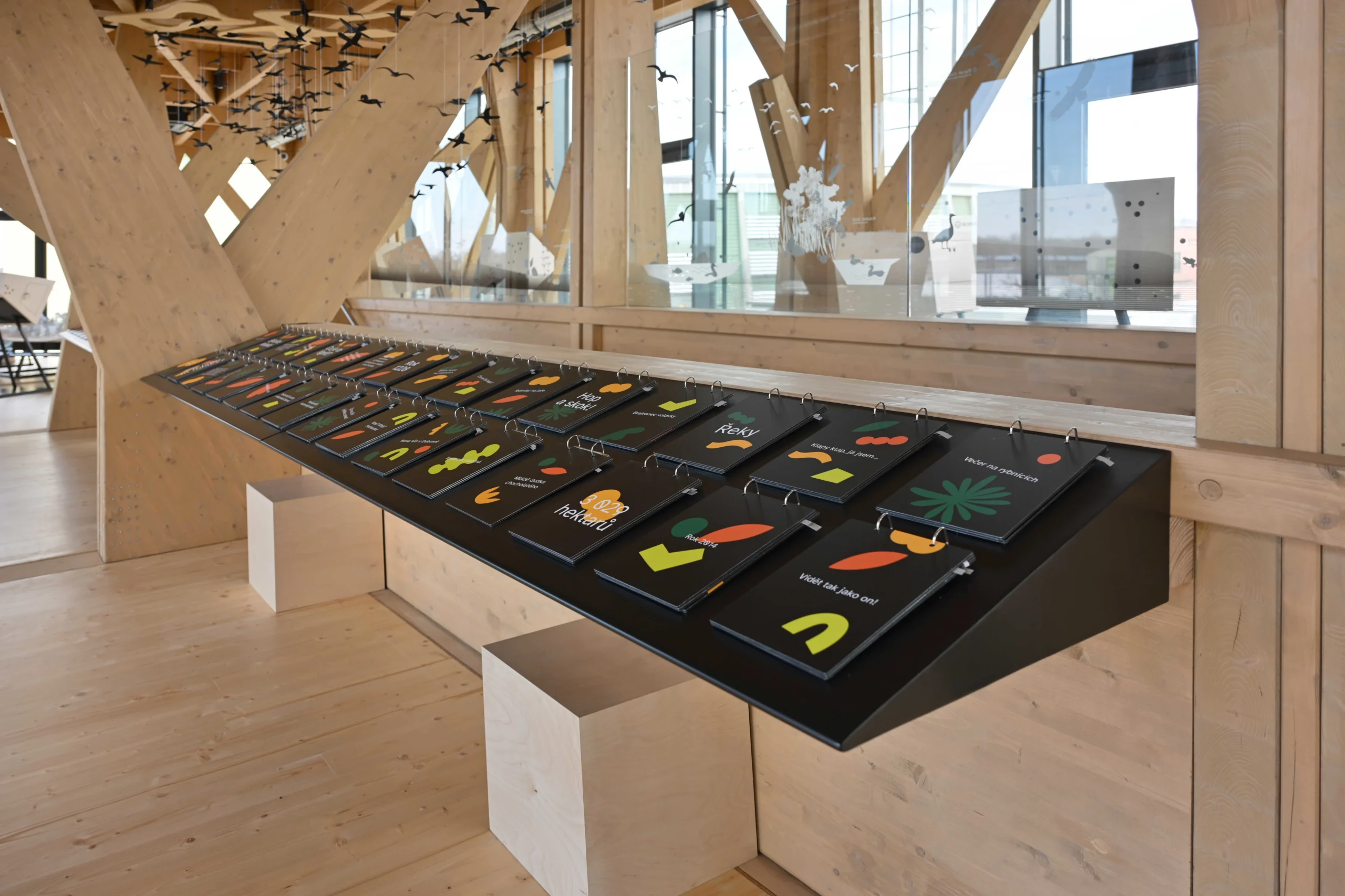 The ground floor with operational and technical facilities houses a lecture hall for up to 56 people, classrooms, and a workshop. The pleasant experience of visiting is enhanced by the use of wood in the building's interior. The house will serve the public and offer educational programs for schools as well as leisure programs for children and youth. The exhibition also features an interactive audiovisual system and unique sound information boxes.