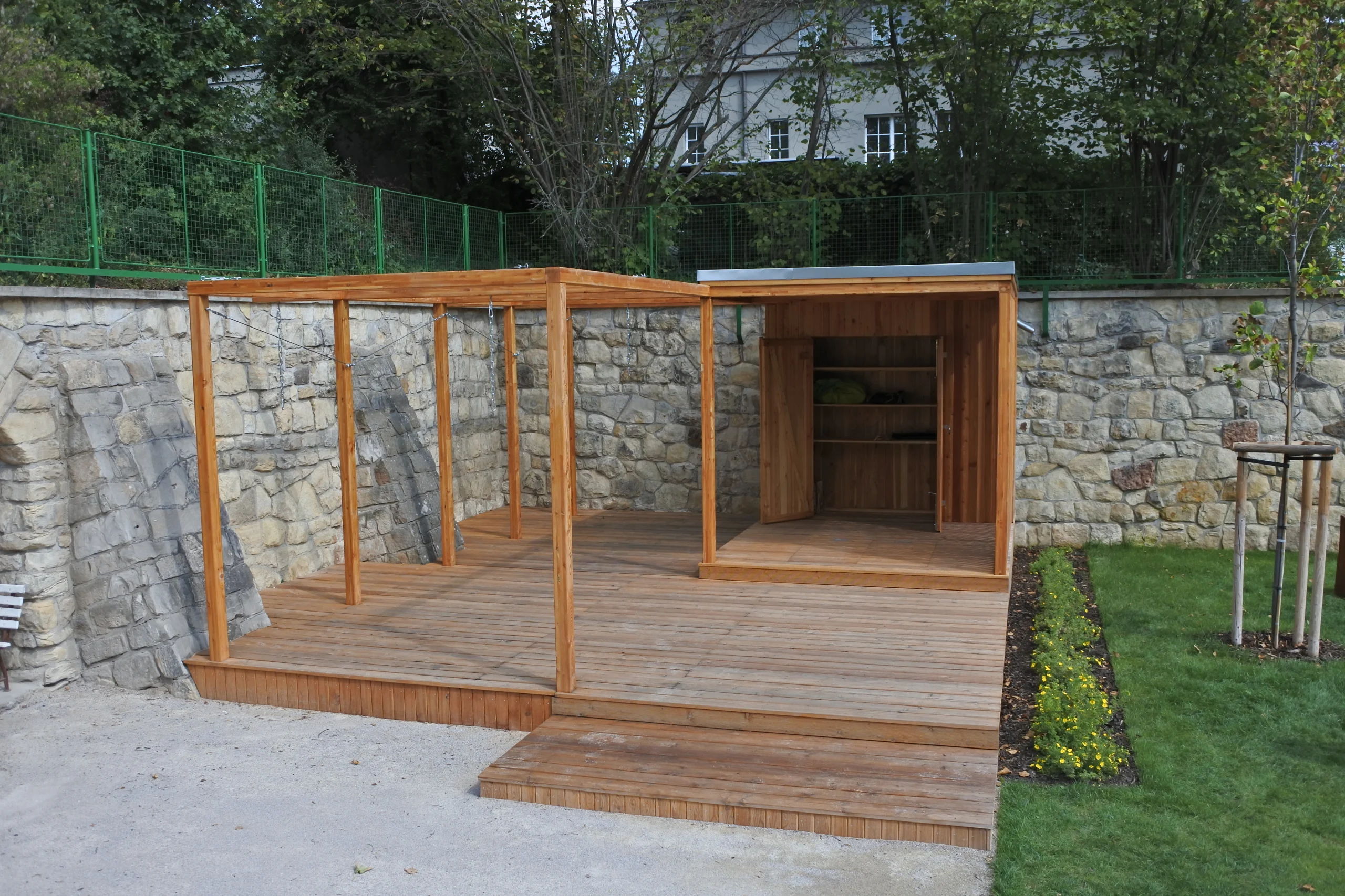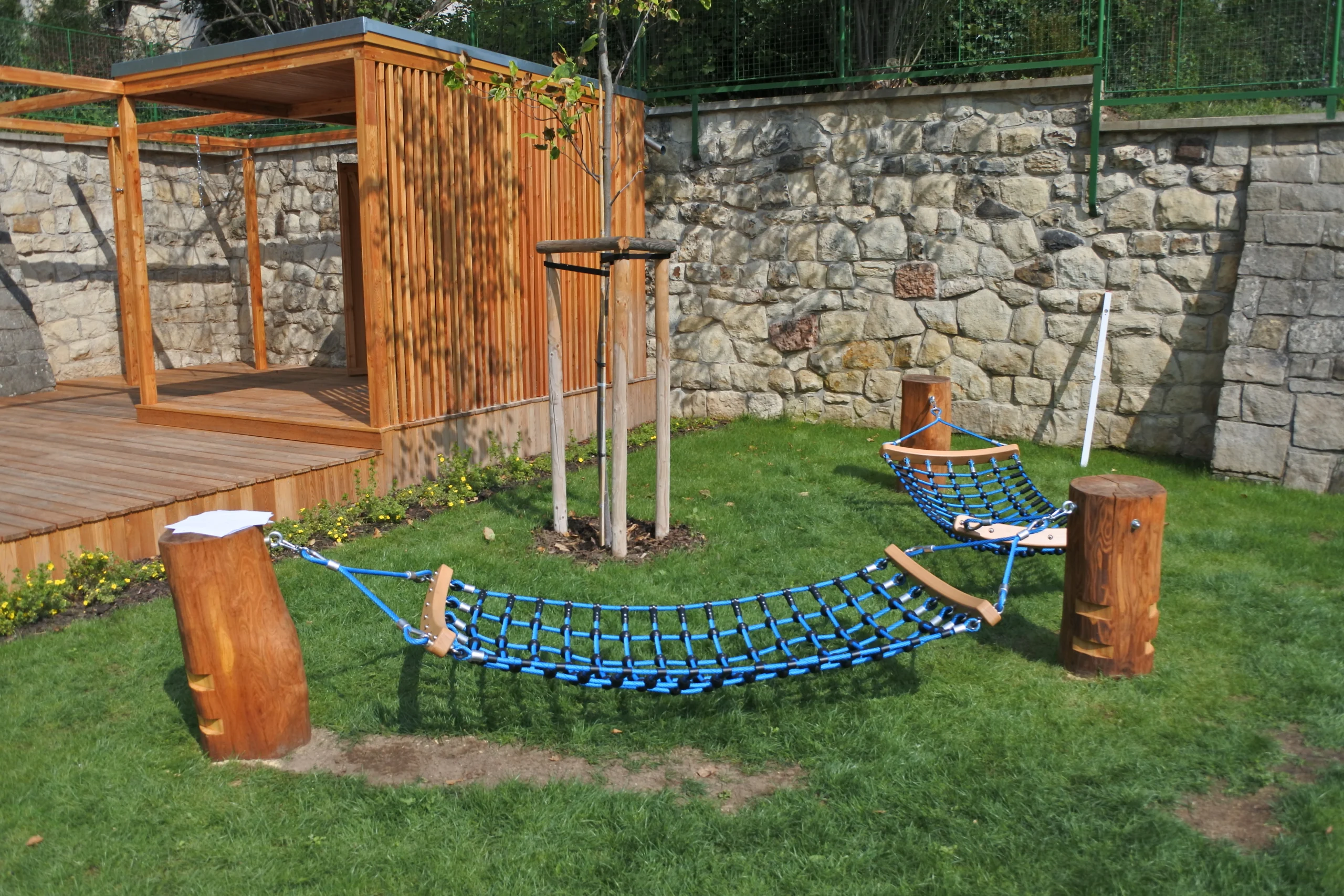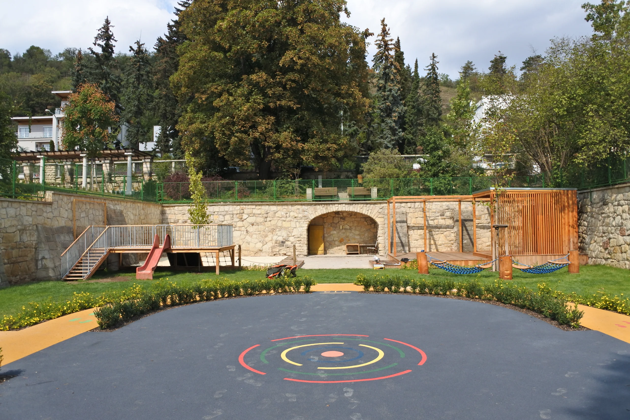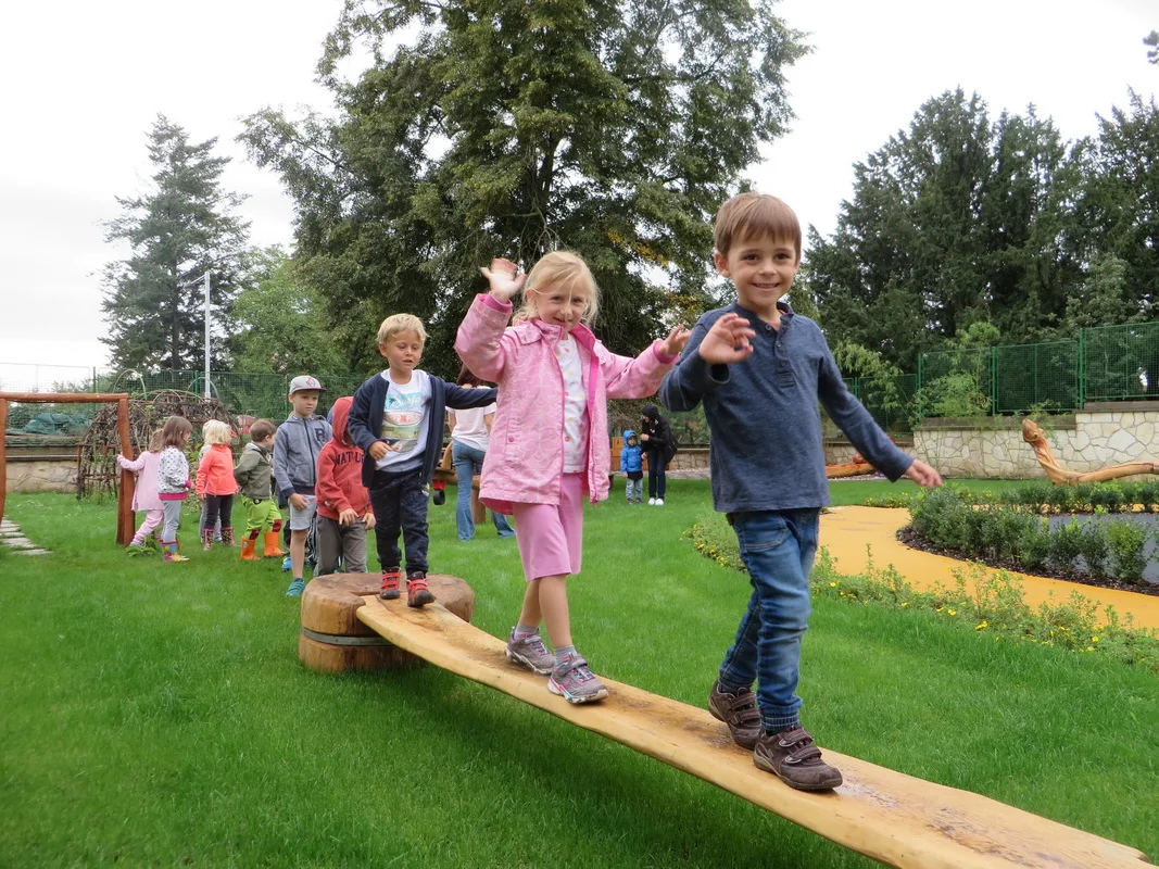 We enriched the garden of the architecturally valuable functionalist building with original play structures designed by artist Ivan Nacvalac. The tennis court, which had stood here since the First Republic, was transformed into a space where children develop comprehensively every day. The sensitive design also includes zones intended for relaxation, play, education, movement, and gatherings of people from the beautiful villa district.