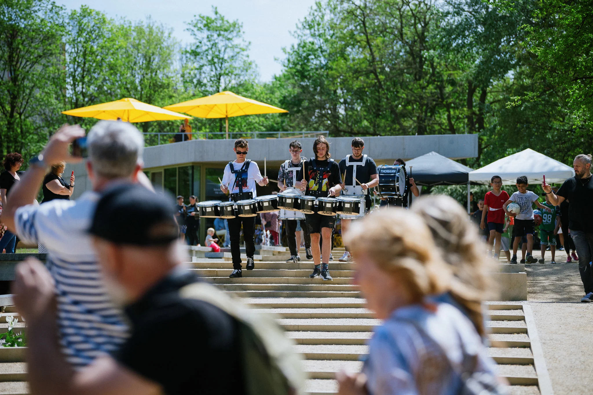 Díky uvedenému přístupu jsou herní a sportovní prvky rovnoměrně rozmístěny po celém prostoru a propojeny betonovými terasami, jež slouží i k posezení či menším kulturním akcím. Autorka článku kladně hodnotí také vznik kavárny s vyhlídkovou střechou. Ta se stala novým středobodem parku a nabízí jedinečný výhled na obnovenou vodní nádrž a kaskádu, tedy cenné historické prvky, které byly zachovány a modernizovány.