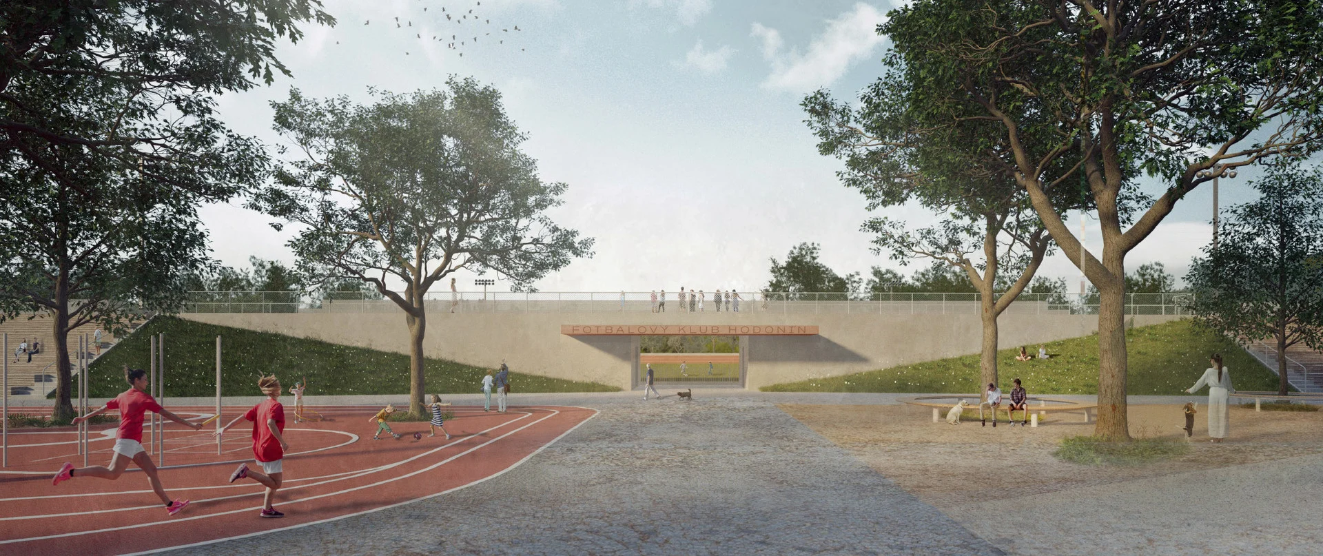 Nadace KKFF je ráda, že je součástí budování atraktivního sportovního areálu budoucnosti. Otevřený prostor, v němž zaplesá srdce každého sportovce, pomáháme obohatit o prvky moderní architektury. Nebudou chybět ani místa pro relaxaci a samozřejmě zeleň. Diváci budou sledovat výkony svých oblíbenců nejen na hlavní tribuně, ale také na tribuně u hřiště s umělou plochou.