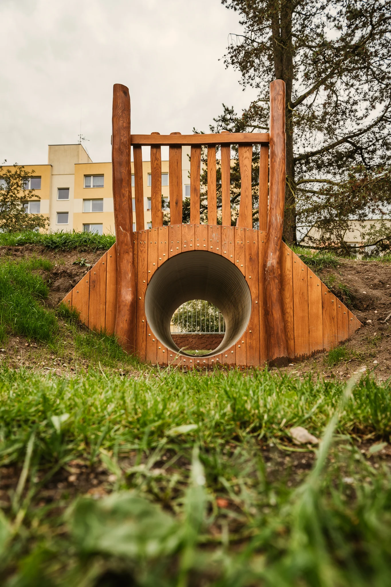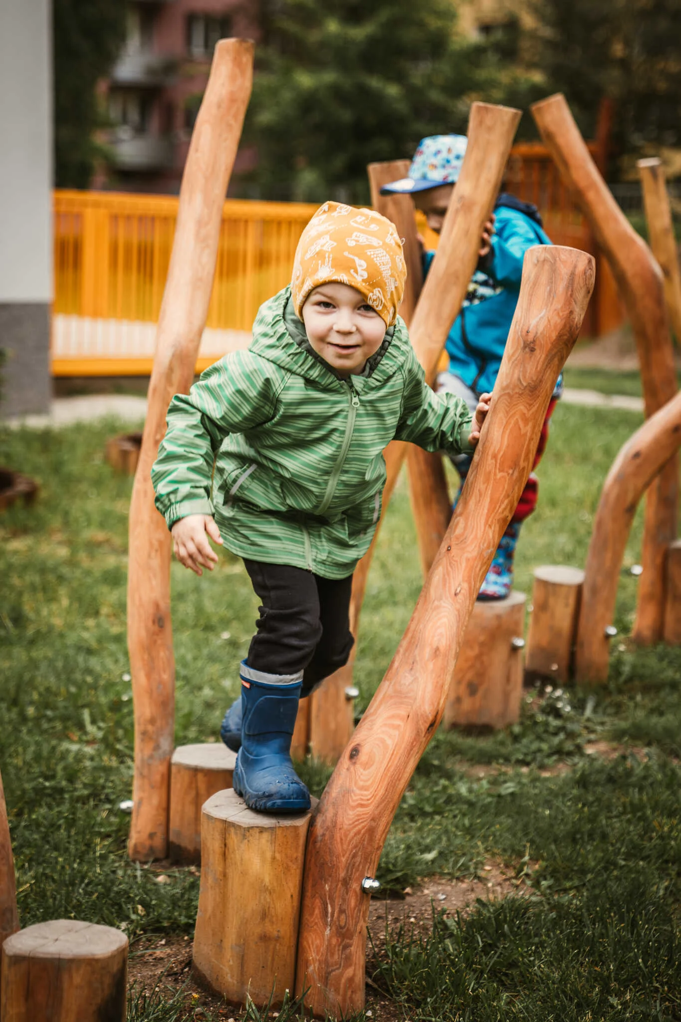 Architektonický návrh rozdělil zahradu na několik částí s novými herní prvky: utržený balón (přírodní herní soustava kolem vzrostlého stromu) nebo letadlo. Orientaci na cestě kolem světa usnadňuje návštěvníkům statný rozcestník. Stejně jako u dalších projektů nebylo naším cílem pouze zvelebit prostor. Nová zahrada pomáhá zlepšovat mezilidské vztahy na budějovickém sídlišti. Panuje zde dobrá nálada a to jde ruku v ruce s větší chutí poznávat svět a lidi kolem.