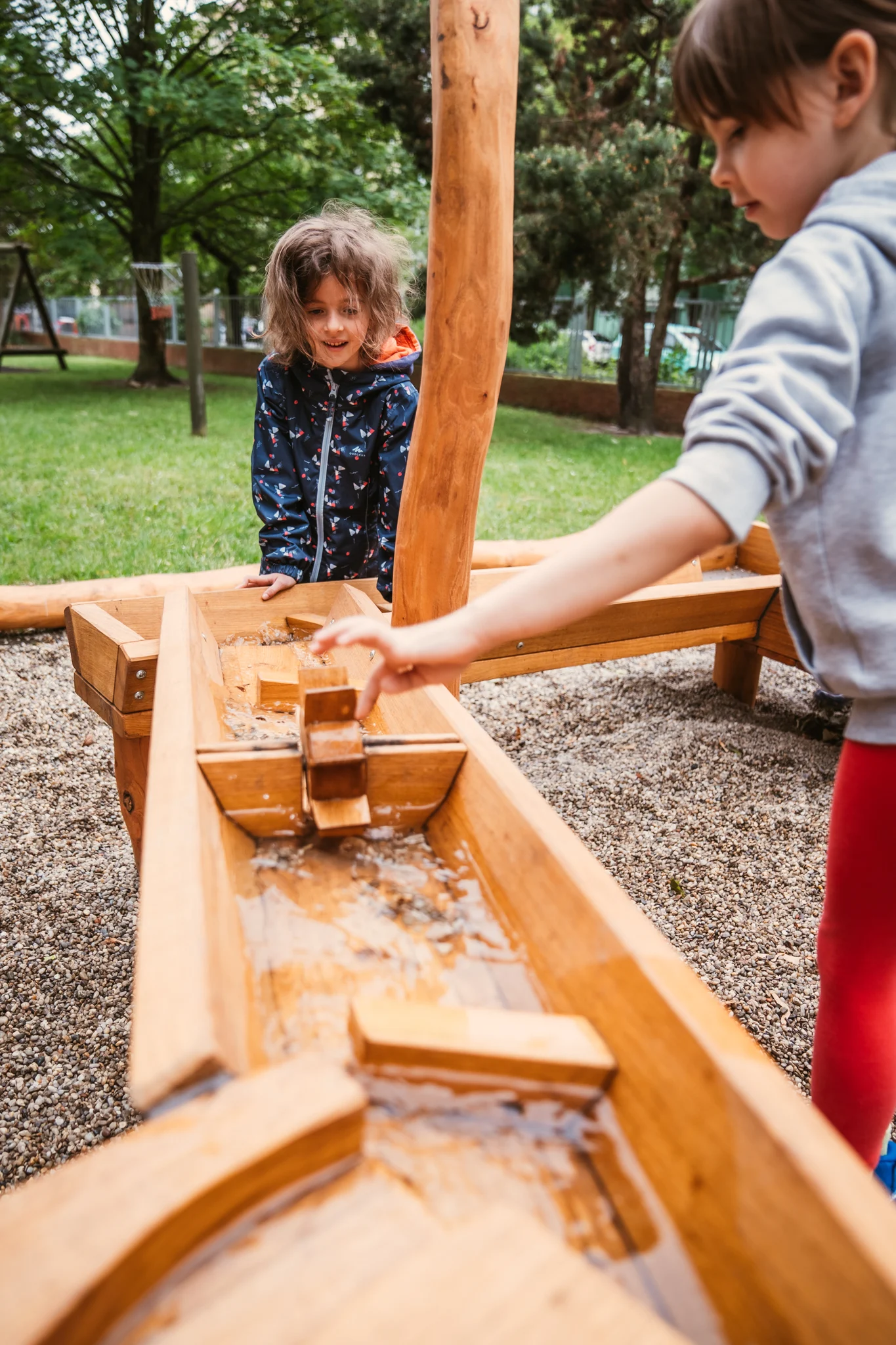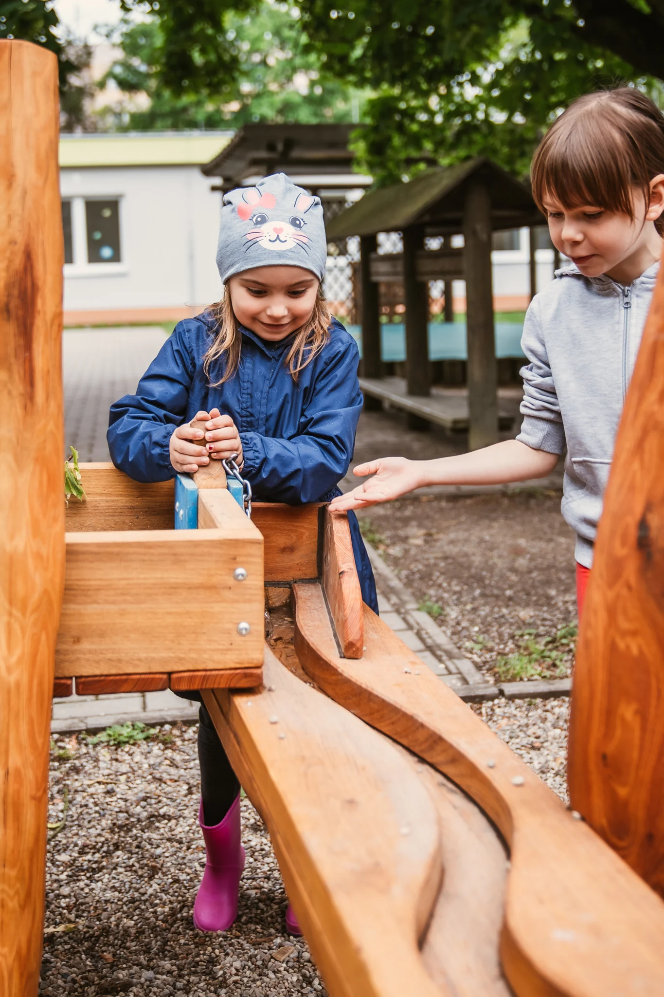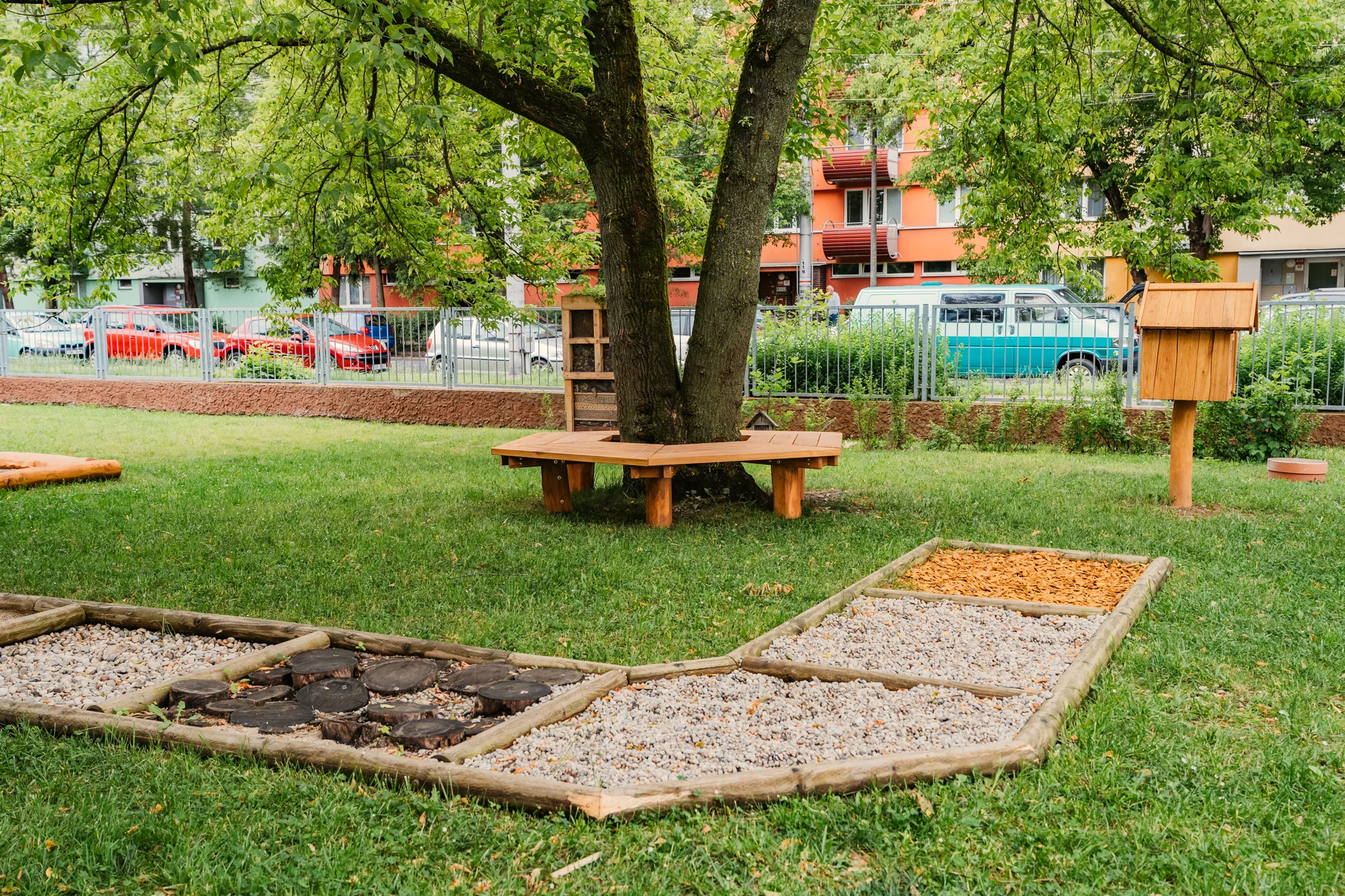 Na bezmála sedmi tisících metrech čtverečních vzkvétá nová zelená oáza. Chtěli jsme totiž obnovou napomoci tomu, aby se děti, které často bydlí v betonové sídlištní zástavbě, cítily spokojeně a byly aktivní a otužilé. Zahradu jsme navrhli tak, aby podporovala dětskou zvídavost a poznávání. Její malí návštěvníci putují zemskými světadíly a přitom pozorují různé rostliny a poznávají zvyky v různých částech světa. Učí se tak chápat, co se děje ve společnosti a přírodě.