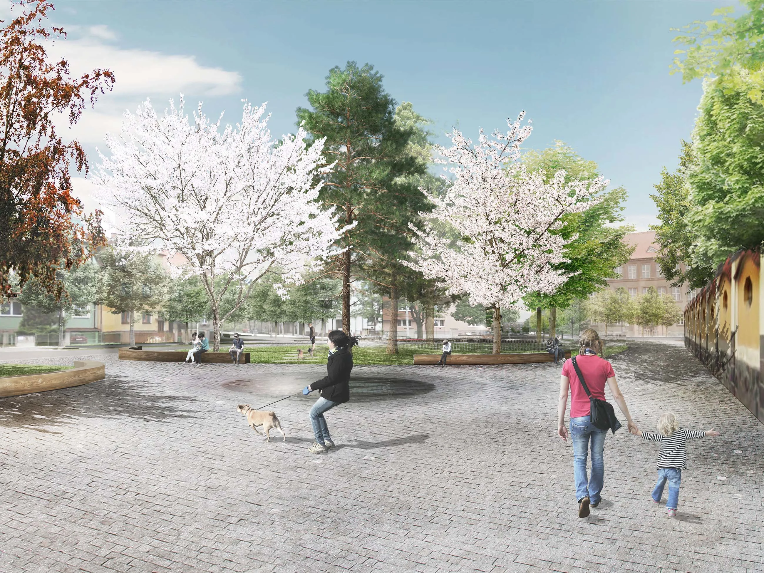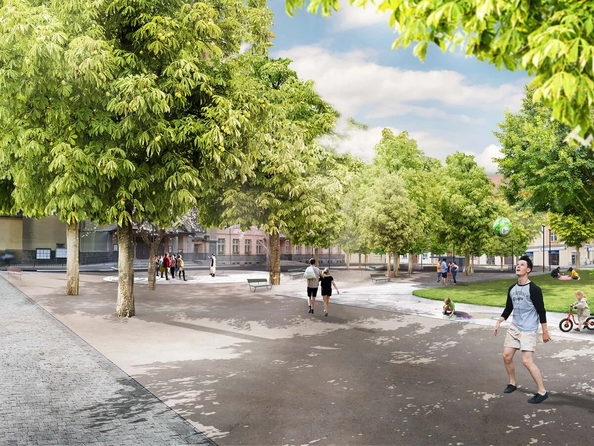 V architektonické soutěži zvítězilo studio re:architekti, které předložilo vizionářský návrh na budoucí podobu náměstí.